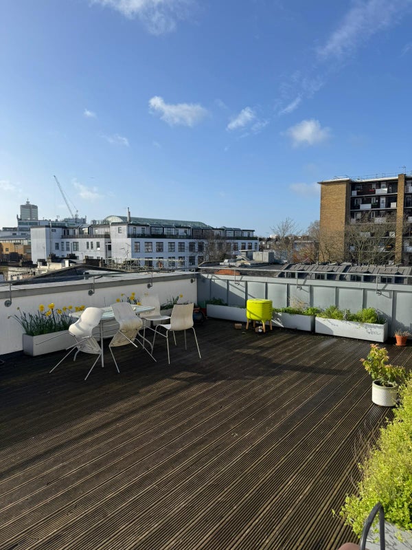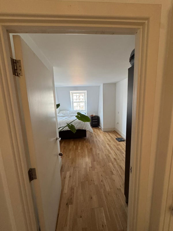 It’s a double room (5 × 3 m) overlooking Camden High Street. It has one window and, like the rest of the flat, gets plenty of natural light.
