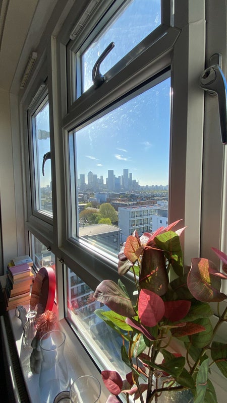 We’re offering a double room in a newly refurbished 13th-floor apartment with incredible views across London and Canary Wharf from every room 🌆