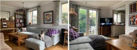 Living room includes big smart TV (Netflix included in rent), large sectional couch that converts to a 3-person (!) bed if need be, piano, coffee table, bookshelves, art, antiques, and an all-round cosy vibe