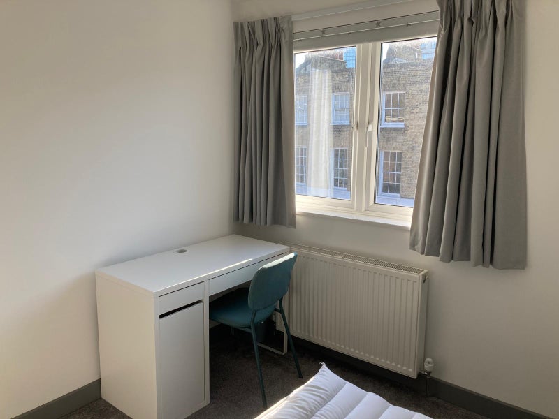 The room is very clean and the furniture is in good condition. The room consists of a double Ottoman bed (so great under-bed storage), desk and chair, large bedside unit with 2 drawers and plenty of storage for clothes. The en-suite has a bathtub with overhead shower.