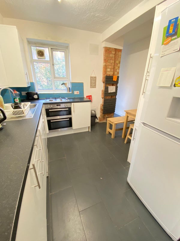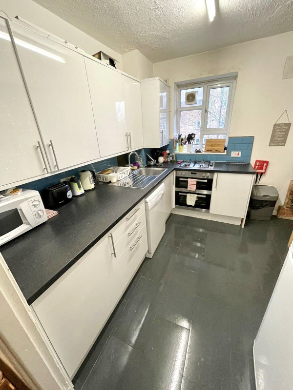 Shared bathroom and kitchen.