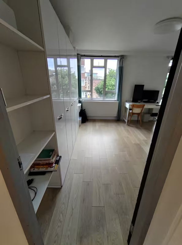 The room is relatively spacious (12 m2 roughly), facing south, with plenty of natural light. It features a folding double bed (140x200cm), giving you more space if needed. Extra-large built-in wardrobes. Dimmable ceiling light in multiple colours. The room is for single occupancy.