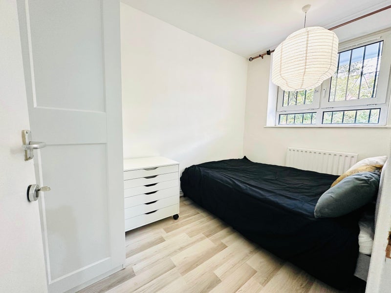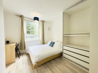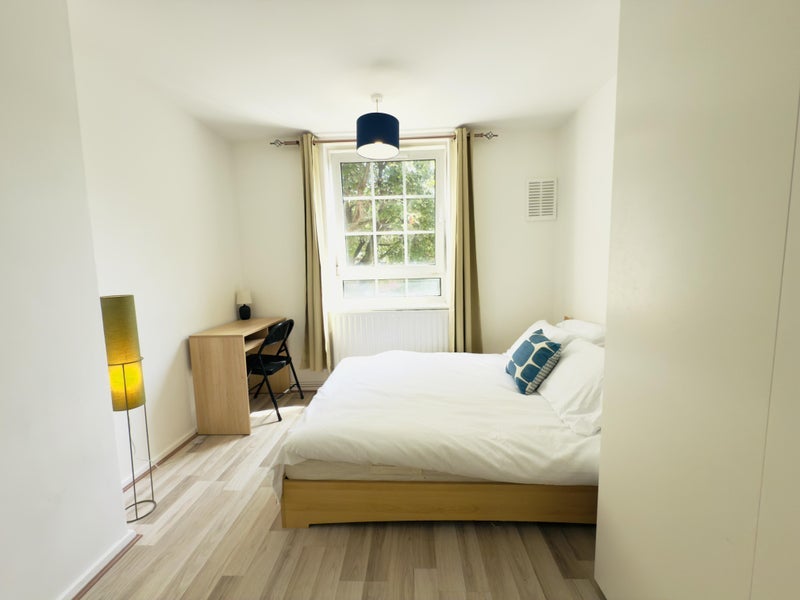 This bright and well-maintained apartment features a contemporary layout with neutral décor throughout. The flat includes a fully equipped kitchen, a shared bathroom, and a separate WC. The room available is generously sized, furnished with a double bed, large wardrobe, chest of drawers, and desk - perfect for remote work or study.