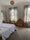 The room itself is on the second floor, facing the garden. It comes furnished with a bed and wardrobe.
