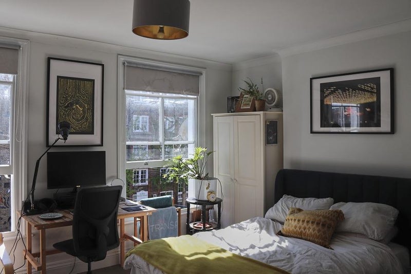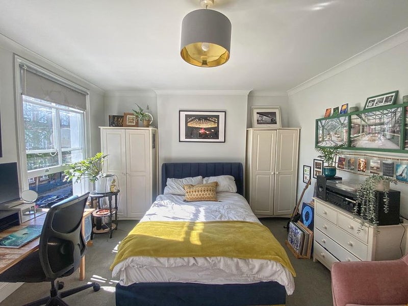 We have a large, south west facing double room with two large sash windows going spare (approx 3.9m x 4.6m). The house has 4 bedrooms set over 3 floors. There are 3 bathrooms (one very large with a freestanding bathtub), a kitchen, a living room and a front and back garden/patio area.