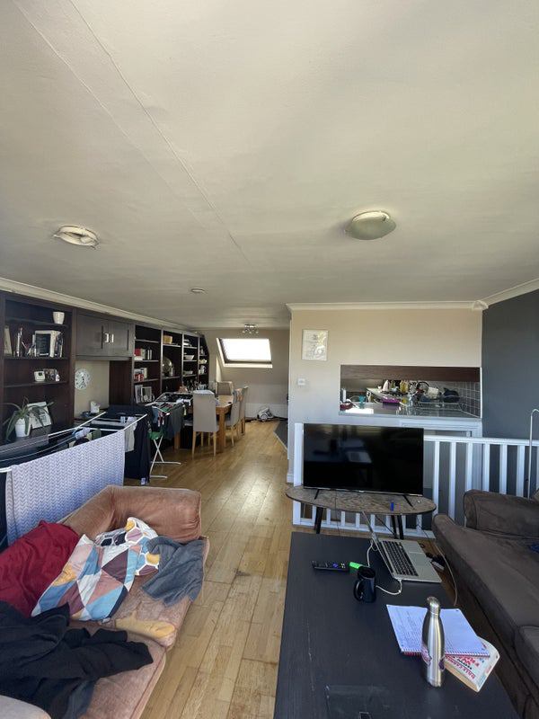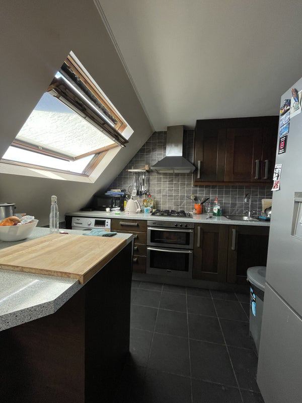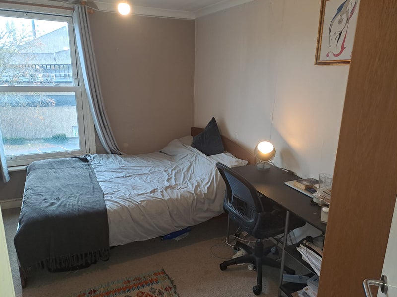 The room comes furnished with a double bed and desk. The flat has 2 floors, the downstairs area includes our bedrooms and bathroom. The upstairs is our kitchen and living room, there is also a balcony that gets lots of sun . It's a lovely, well-lit, spacious and cosy flat. We love our place and we like to keep it clean and tidy.