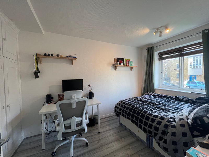 A bright, sun-filled double room is available in a calm and friendly home shared with two professional women in their 30s. The room offers very generous storage space (as you can see in the pics) and more than enough space for both a double bed and a good sized desk.