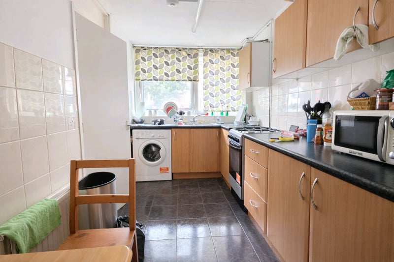 * large fridge, plus usual kitchen appliances e. g. microwave, toaster, kettle, new plates cutlery mugs etc.