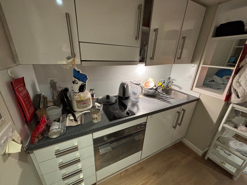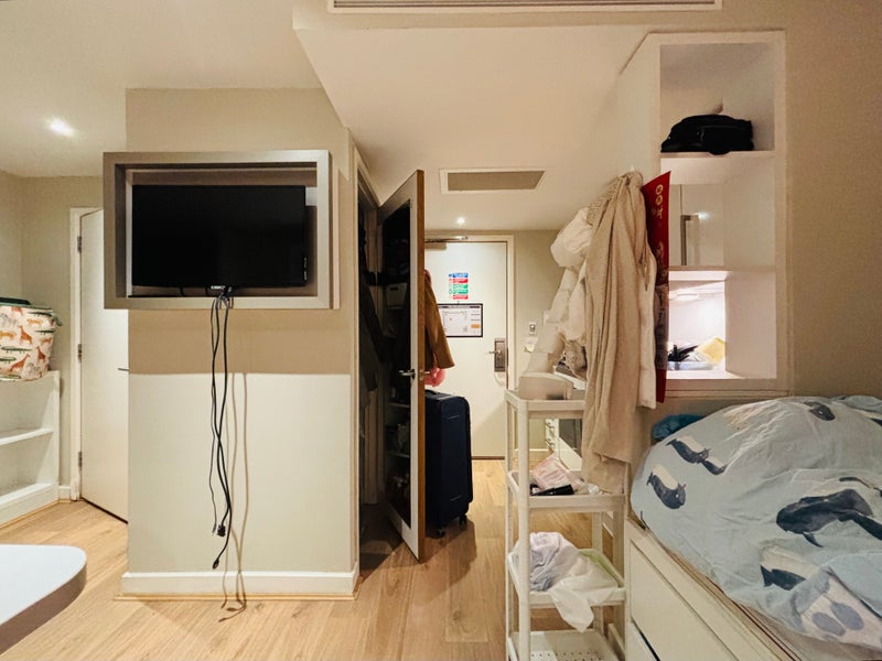 This offer is for one person in a twin studio room. The room includes a private kitchen, large bathroom, study desk, TV, air‑conditioning/heating, bar desk, and plenty of storage. If helpful, I can also leave my fan, extra mattress, storage rack, and cooking utensils.