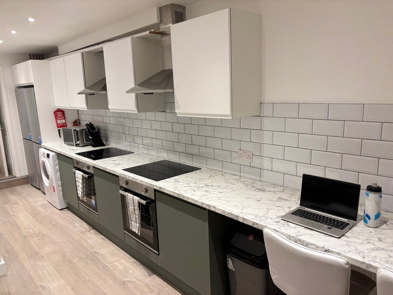 The room has loads of natural light and is fully furnished with a large double bed with mattresses, wardrobe, chest of draws, desk and bedside cabinet. The bedrooms has its own private ensuite where the finish is of a high standard and the shower system allows for high usage without noticing a change in the water pressure. Also included is a small fridge.