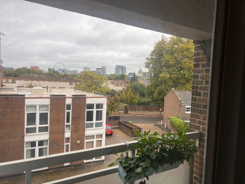 The room comes with its own small attached balcony, with a lovely view of The London eye — perfect for your morning coffee or watering plants! Also comes furnished with a bed and built-in closet space (with room for other furniture as pictured, so you really can make the space your own)!