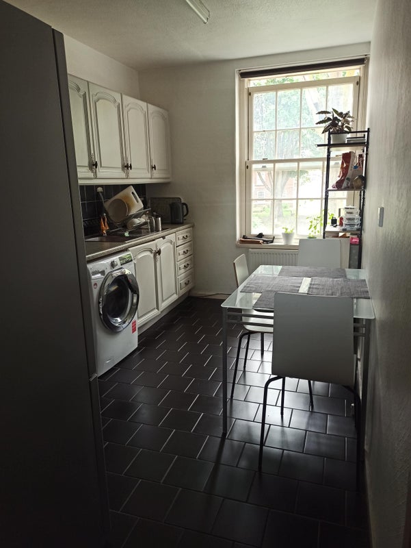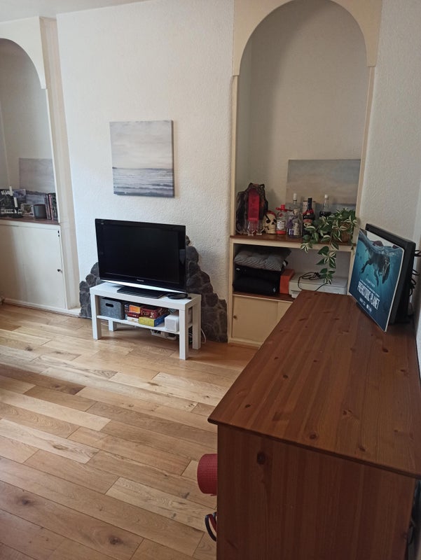 The flat has a spacious kitchen and separate living room, where we often sit down together for a shared meal or a tv evening. We have a split bathroom. Cleaning duties are split and rotated between the 3 tenants.