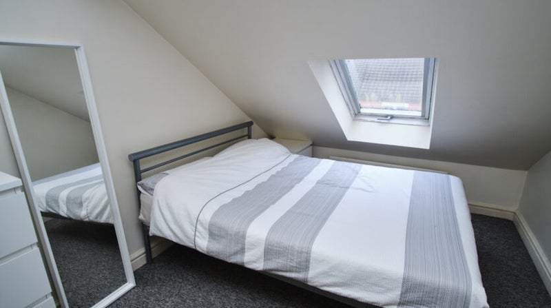 Located in the student triangle, the house is a 5 minute walk to town and a 7 minute walk to Loughborough University campus. The Room is on the 3rd(Top) floor with a double-sized bed and a street facing window. The house is clean and organised, with friendly and polite 2nd year students, 2 bathrooms, a large kitchen space and living area.