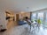 The property features a well-proportioned open-plan kitchen and living area, fully equipped for modern living, including essential appliances and a TV.