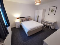 The room offers plenty of storage. Is furnished with two wardrobes (one not seen on photos), chest of drawers, bedside drawers, desk, comfortable double bed and blackout curtains for great night sleep.