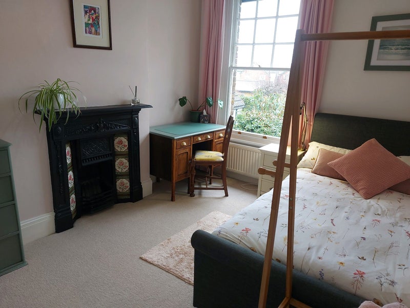 Accommodation: Freshly decorated 3m x 3.2m large room in characterful Victorian villa. Ottaman double bed, desk, chair, chest of drawers, bedding and hanging space.