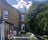 View over large garden with enclosed courtyard and seating for shared use.