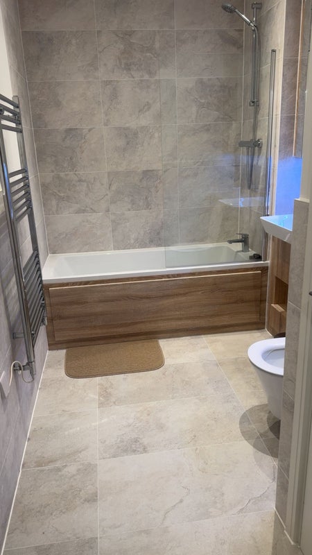 1 shared bathroom. Bath tub and shower