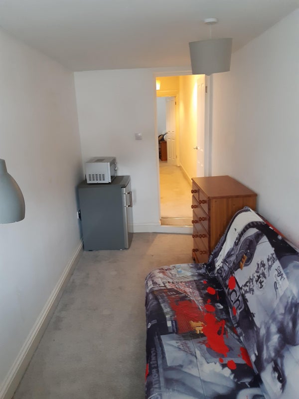 Single occupancy room to let with own private living room(2 rooms for the price of one, one room as a bedroom and one as a living room). Shared kitchen and bathroom with a bath and shower. All bills included in the price including free wifi. Garden with patio. Close to town centre and train station.