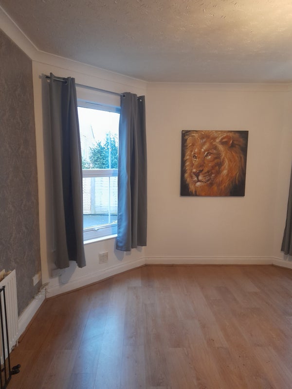 Studio flat with separate kitchen. Recently redecorated. Ground floor with 2 double glazed sash windows overlooking communal garden.
