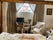 Room is furnished with beautiful wooden Four poster bed, wooden wardrobe and large bay windows with original shutters.