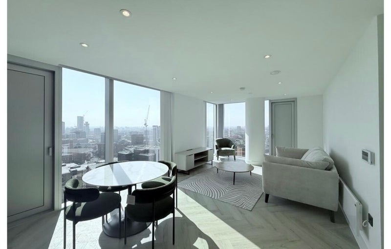 We're currently living in a stunning 2 bedroom corner apartment in M3. We're the first to live in it, and moved in here in July last year. We're 28 floors high. There's 2 bedrooms and 2 bathrooms. The building has gorgeous communal areas and a great gym. Rent is £875 each and bills roughly £200. Parking available for additional £150.