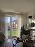 All of my belongings will be put away of course! Large sofa, large Samsung TV, desk space for work in the living room. Bedroom has a double bed, large body length mirror and dressing table.