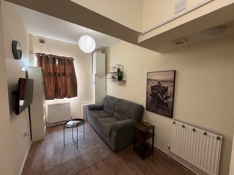 Nice living room with Tv and dining area, large kitchen and access to back garden.