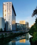 It is in the Affinity Living Riverside building with great views of the Irwell river and located next to Salford Central station within Spinningfields in the heart of the city.