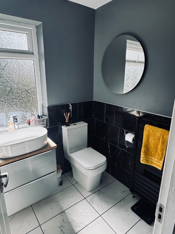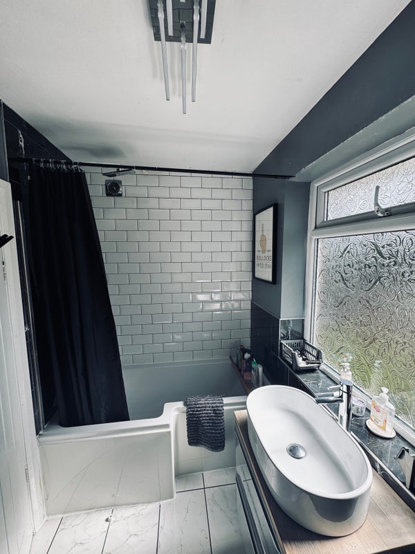 - modern bathroom with bath/shower 🛀