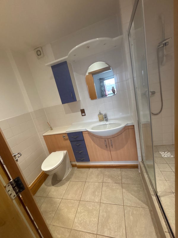 Spacious double room with en-suite opposite Trafford bar tramline. Current tenant is 26, a teacher and a pleasure to live with! Very clean and tidy, love a tea & chat in the living room as well a night out. Property has a private car park with allocated parking as well as a lift. The flat itself is a 2 story flat, away from the main road so very quiet. The room is furnished with a lot of space for more furniture if desired. Available immediately & paid up till May 1st! Total cost listed below: