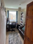 I used the room as a study to finish my PhD, but the sofa, bookcase, lamp, and desk will be removed for your move-in. The wardrobe will stay but there is not a bed. I recommend getting a divan bed with drawers for additional storage. A double bed fits wall to wall with room for a bedside table and decent floor space. A single bed will allow more space. There is a possibility my landlord will be willing to buy this for you, which we can discuss if you’re interested.