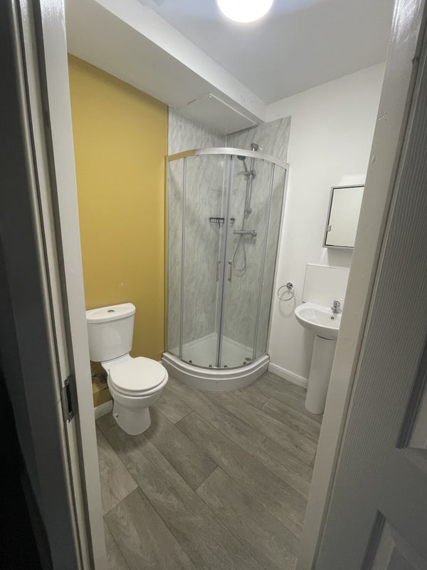 The shared areas have a beautiful finished kitchen/Living space complete with double hobs, double ovens, double fridge freezers, fitted cupboards, dishwasher, washing machine and tumble drier. There is a seating area at the end of the kitchen with a large sofa, and a large wall mounted flat screen TV. Dining table and chairs. Great place to catch up with housemates.