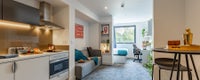 Premium studios offer all the features of our studios + more! The addition of a stylish sofa and lounge area - plus a high dining table - makes these studios one of our best-selling rooms! This is the perfect student accommodation to spend your time at university in Manchester and Salford. Ensuite bathroom with rainfall shower and backlit mirror