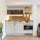 Kitchenette with microwave/grill, hob, fridge/freezer sink & storage