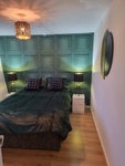 A lovely double bedroom with large bed, side tables, lamps, wardrobe, and decoration pieces is available for rent. The house features a large bathroom, a box room, living room, dining room, kitchen fitted with all amenities, and a garden. I am a live-in landlord and you will be sharing the house with me. I am very laid back and flexible and work 3-5 days a week.