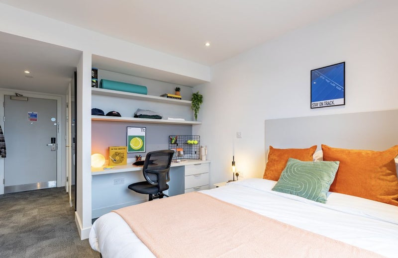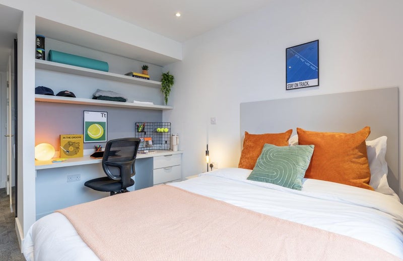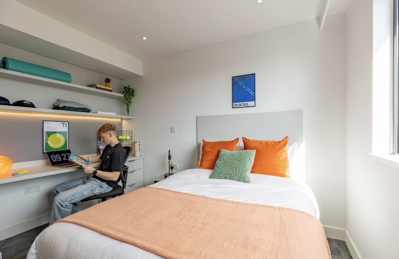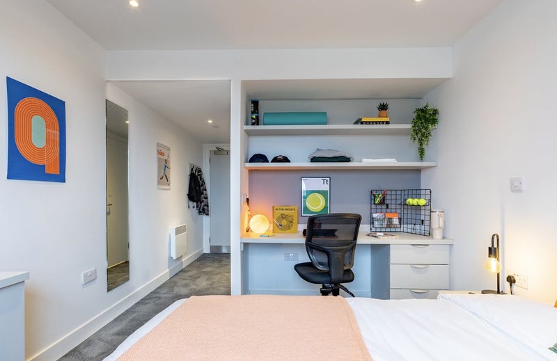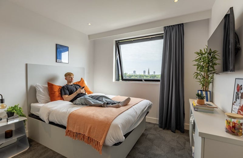 With students from the University of Salford, Manchester Metropolitan University, and the University of Manchester, true Salford offers a welcoming and diverse community where everyone feels at home. Our accommodation features all-inclusive bills, unlimited high-speed Wi-Fi, and secure key card access for convenience and peace of mind. You'll enjoy a private ensuite room with a rainfall shower, backlit mirror, a double bed with a true mattress, and even an in-room sofa for added comfort. Smart TVs, full-length mirrors, and plenty of storage complete the experience.