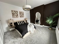 Room is furnished double bed, full wall wardrobe and beside cabinets, space for a desk and chair if required.