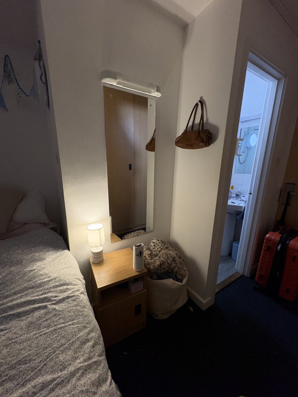 The room is a decent-sized en-suite with a double bed located just one flight of stairs up in a quiet flat. You’ll have your own en-suite bathroom plus a shared kitchen and living space with quiet flatmates. Bills are included.