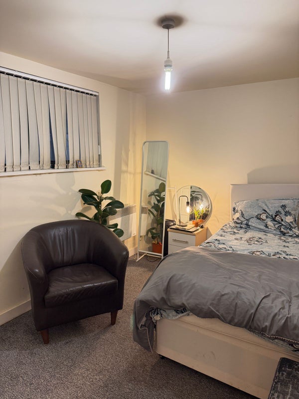 Bright furnished room with private washroom, perfect for a students or couple, in Hulme (M15 5AX). Quiet, safe, and close to universities and Manchester City Centre.