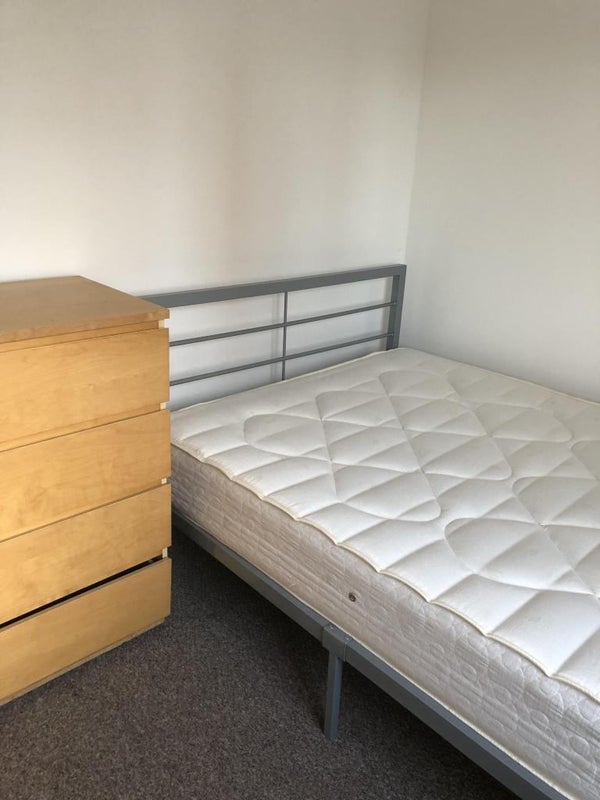 A cozy small double bedroom is available in a furnished 2-bed second-floor apartment located at the corner of Stretford Road & Chorlton Road in Hulme – just a short walk from Deansgate and major universities!