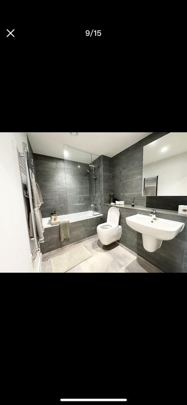 The room has a double bed with plenty of storage space. It's fully furnished including a wardrobe, chest of drawers and two bedside tables, two clothes rails. You would share a bathroom including a bath and shower.