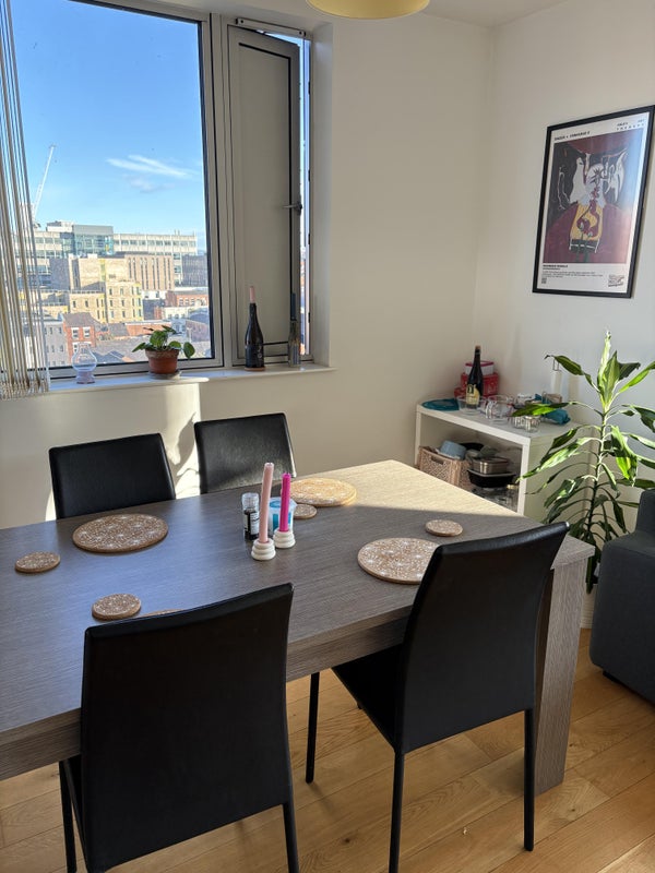 My lovely flatmate of 1.5 years is moving out to live with her girlfriend - great for her, bad for me! That means I'm back on the market. The flat is a 2 bed / 2 bath and the available room has an ensuite bathroom. A desk and chair easily fit in the room, and it comes furnished with a bed, a set of drawers, and a closet. We live on the 7th floor and have got great big windows and a little balcony. The building is right in Northern Quarter, so great access to all the fun stuff!