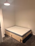 • Bedroom: Includes a double bed with integrated storage and two clothing rails with shelves. There is ample space for a desk if you work from home. The previous lodger left a shoe rack and a TV stand, which I can remove if you don’t want them.