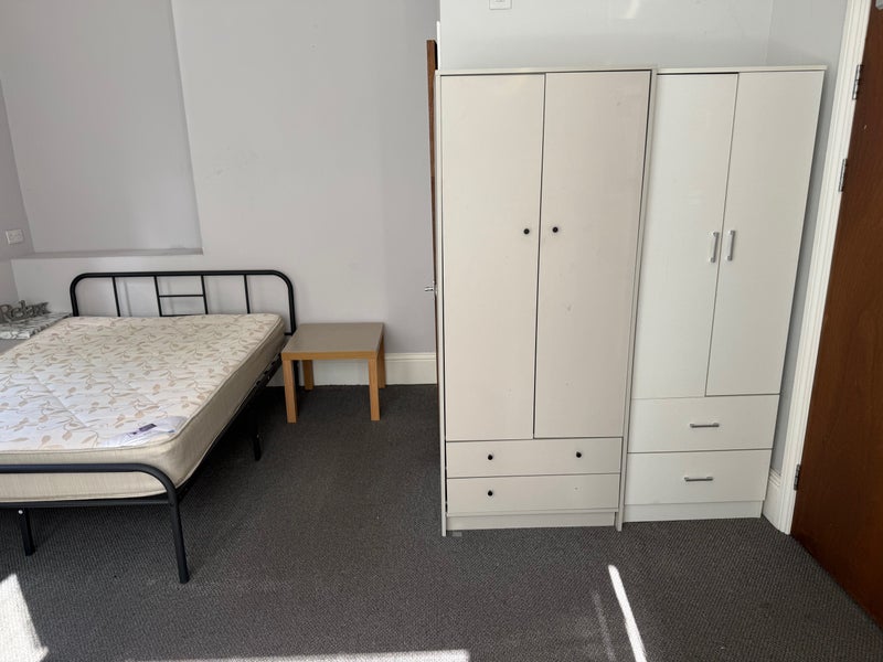 Studio is furnished with of double bed, wardrobe and table, en-suite shower room