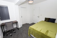 All rooms are fully furnished and newly carpeted, including the communal areas. Our units are provided with a television in the communal living area, pots, pans, dinner service and cutlery. The idea is that you arrive with your bag, towels and bedding, everything else is provided. The rooms include, double bed, wardrobe, desk, chair, bedside cabinet and chest of drawers.