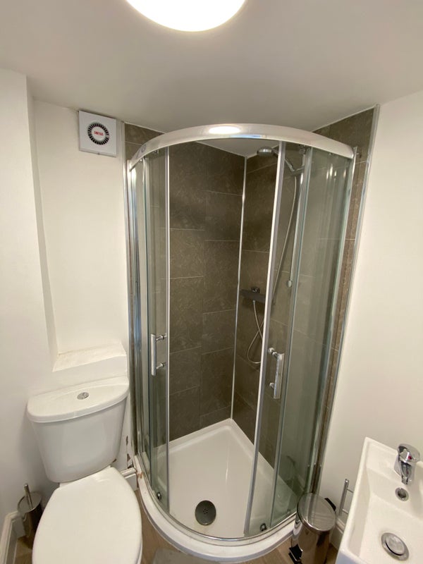 Room 6 (£450) is a large student attic room with ensuite shower room. The room has a double bed, wardrobe with drawers, desk and chair and bedside cabinet. Available from beginning of May 2026.