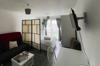 Fully equipped large room with a double bed, sofa, desk, TV, balcony, plenty of storage and natural light!