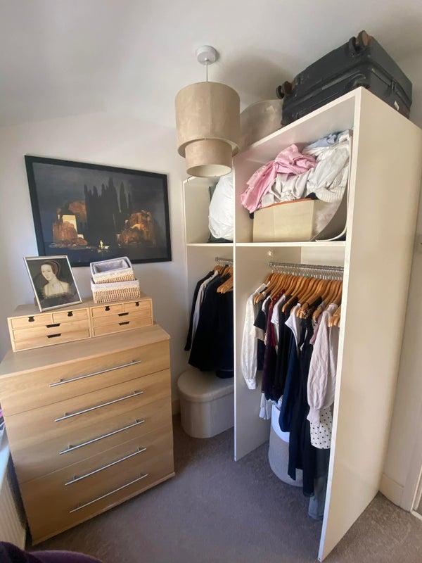 - The room comes furnished with bed, open wardrobe, chest of drawers, and bedside cabinet