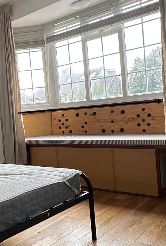 • ✔ Fully furnished: bed, mattress, desk, chair, and wardrobe